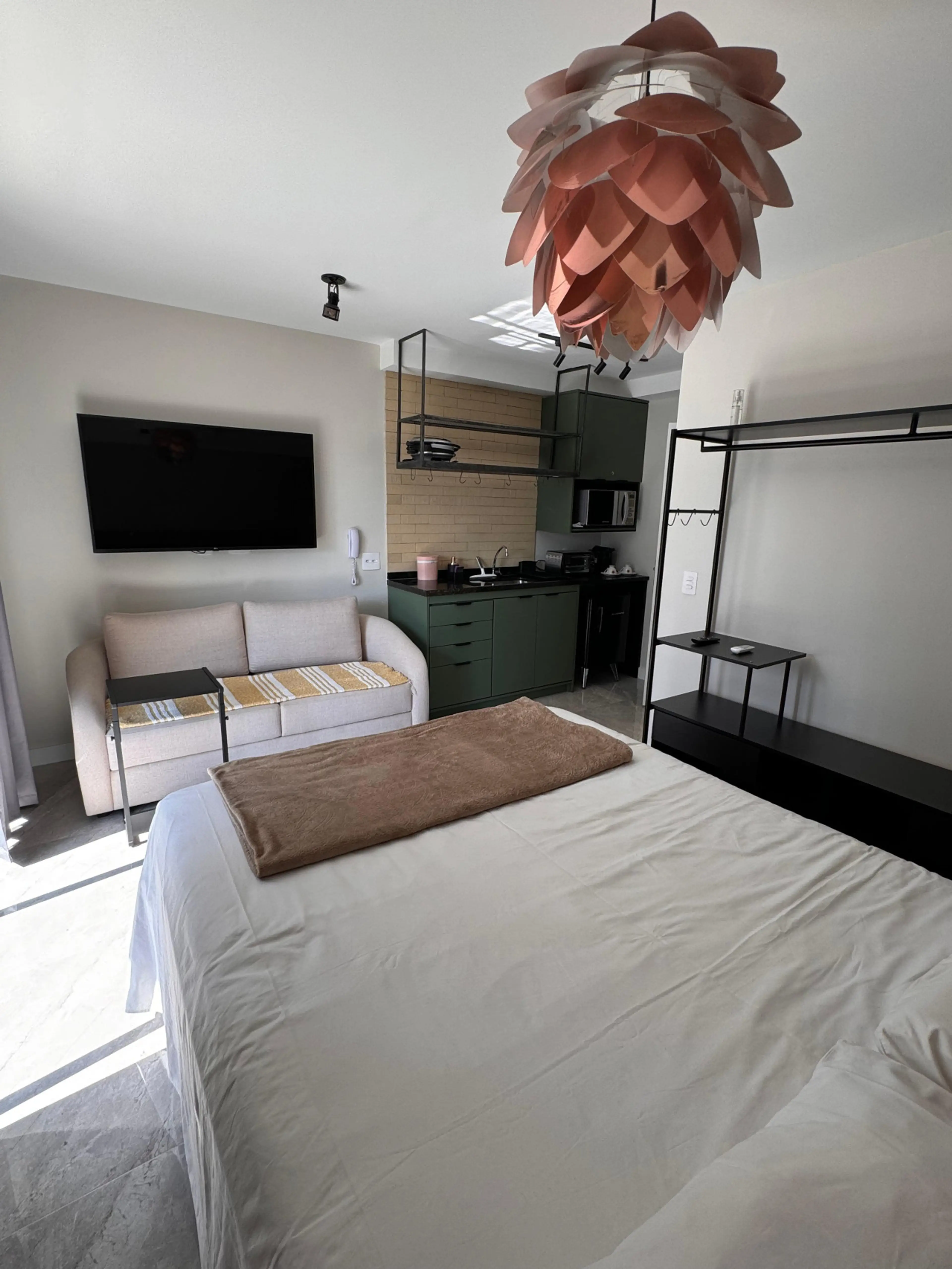 Positive: O Studio é ótimo, exatamente como nas fotos. É possível preparar um pequeno café da manhã, e se quiser preparar alguma refeição. Cama macia, ótima tv e localização muito boa perto do aeroporto. Perto também do shopping Ibiraquera. O pessoal da recepção foi muito prestativo e resolveram o problema da vaga de garagem pois estávamos viajando numa pick up. Agradecimento especial ao Igor que foi muito eficaz.